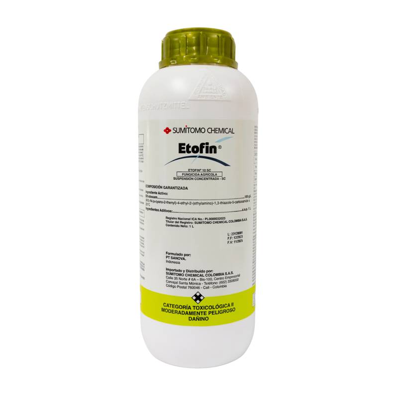 ETHOFIN es un fungicida sistémico con acción preventiva, curativa y translaminar, actúa inhibiendo el crecimiento del micelio y la esporulación. ETHOFIN inhibe la polimerización de la tubulina y también inhibe la respiración, produciendo una lenta oxidación a nivel de mitocondria.
