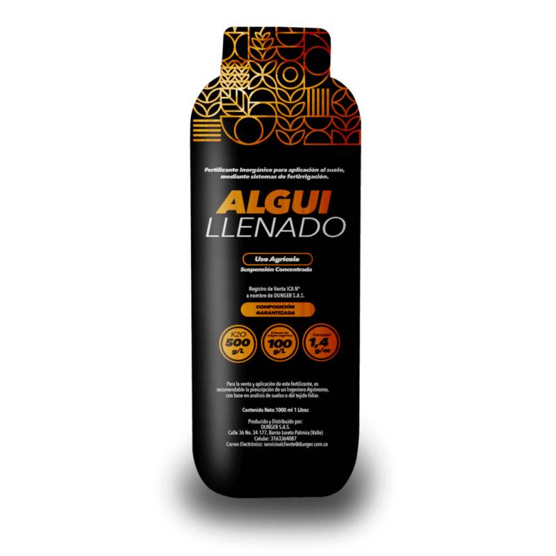 ALGUILLENADO es un fertilizante especializado para el aporte eficiente de potasio como complemento a la fertilización convencional, formulado sin nitrógeno, sulfatos ni cloruros, lo que lo hace ideal para etapas productivas donde se requiere potenciar la calidad del fruto sin alterar el equilibrio nutricional del cultivo. Su versatilidad permite su aplicación tanto vía foliar como a través del sistema de riego, garantizando una alta eficiencia de absorción.