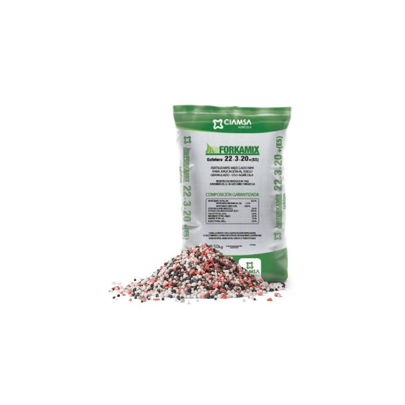 El FORKAMIX® 23-3-20+(ES) es un fertilizante compuesto NPK enriquecido con azufre (S), formulado para satisfacer las altas demandas nutricionales de los cultivos en etapas de crecimiento activo, llenado y producción, donde se requiere una elevada eficiencia fisiológica.